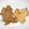 Plato de gofio escaldado y tocino. Tomando leche con gofio.