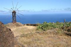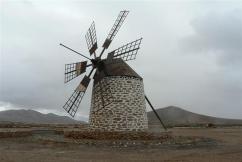 Los vientos alisios en su permanente paso por las Islas constituyen una valiosa fuente de energía. A través de los molinos de viento pudo ser aprovechado este beneficioso recurso que diariamente visita nuestro Archipiélago. Los molinos de planta circular fueron los primeros molinos de viento que aparecieron en las Islas. Este tipo de molino llegó a Canarias poco después de la Conquista, a finales del siglo XVIII y comienzos del XIX, y su difusión fue más lenta porque resultaba más cara su fabricación que el molino de agua. En Fuerteventura, la construcción de este tipo de molinos se extendió por toda la Isla, sobre todo en el centro-norte, debido a los factores climáticos que la caracterizan y a otros factores de tipo socioeconómicos. Estos molinos tienen una sólida y alta estructura, pero esto no ha sido impedimento para que, en ocasiones, algunos de ellos, fueran vendidos y trasladados en piezas por camellos a otros lugares. El número de aspas podía variar entre cuatro o seis. Cuando el molinero las suelta y pone sus velas de lona, a través del empuje del viento comienzan a realizar el movimiento giratorio que pone en marcha todo el mecanismo interno del molino produciéndose su funcionamiento. |