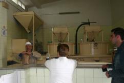 La molienda es el último paso antes de obtener el gofio. En Canarias, los molinos se introdujeron desde la época prehispánica. Anteriormente, la molienda se hacía con molinos de mano y morteros naviformes. Tras el tueste de cereales y/o semillas, éstas se trituraban, elaborando así este rico alimento de origen canario. |